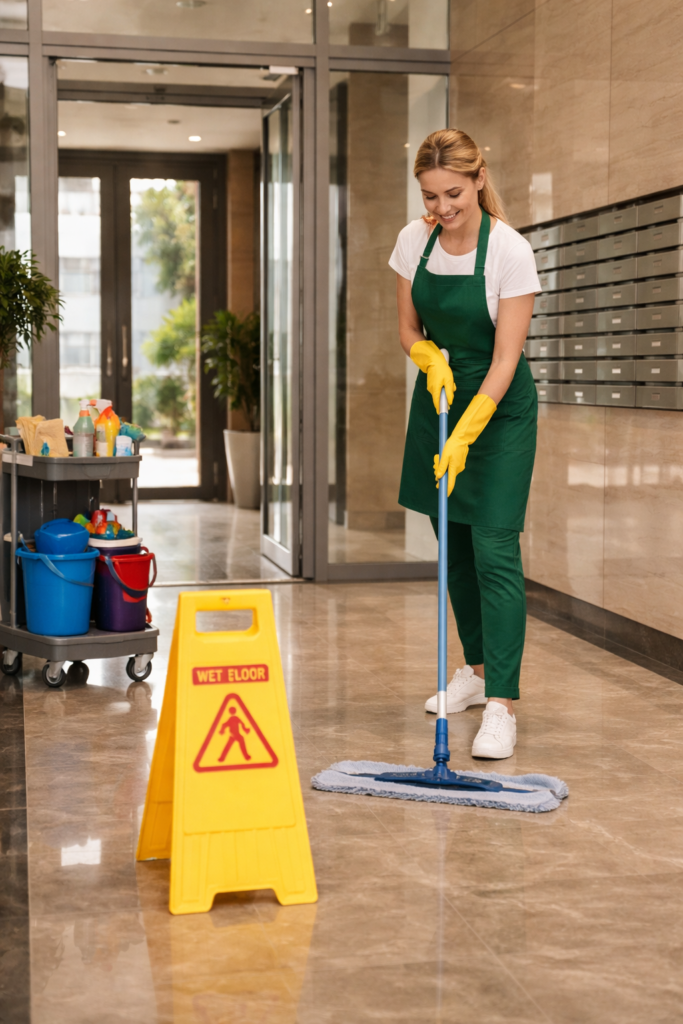 Maintenance cleaning for communal areas, entrances, staircases and shared spaces in residential buildings and communities.